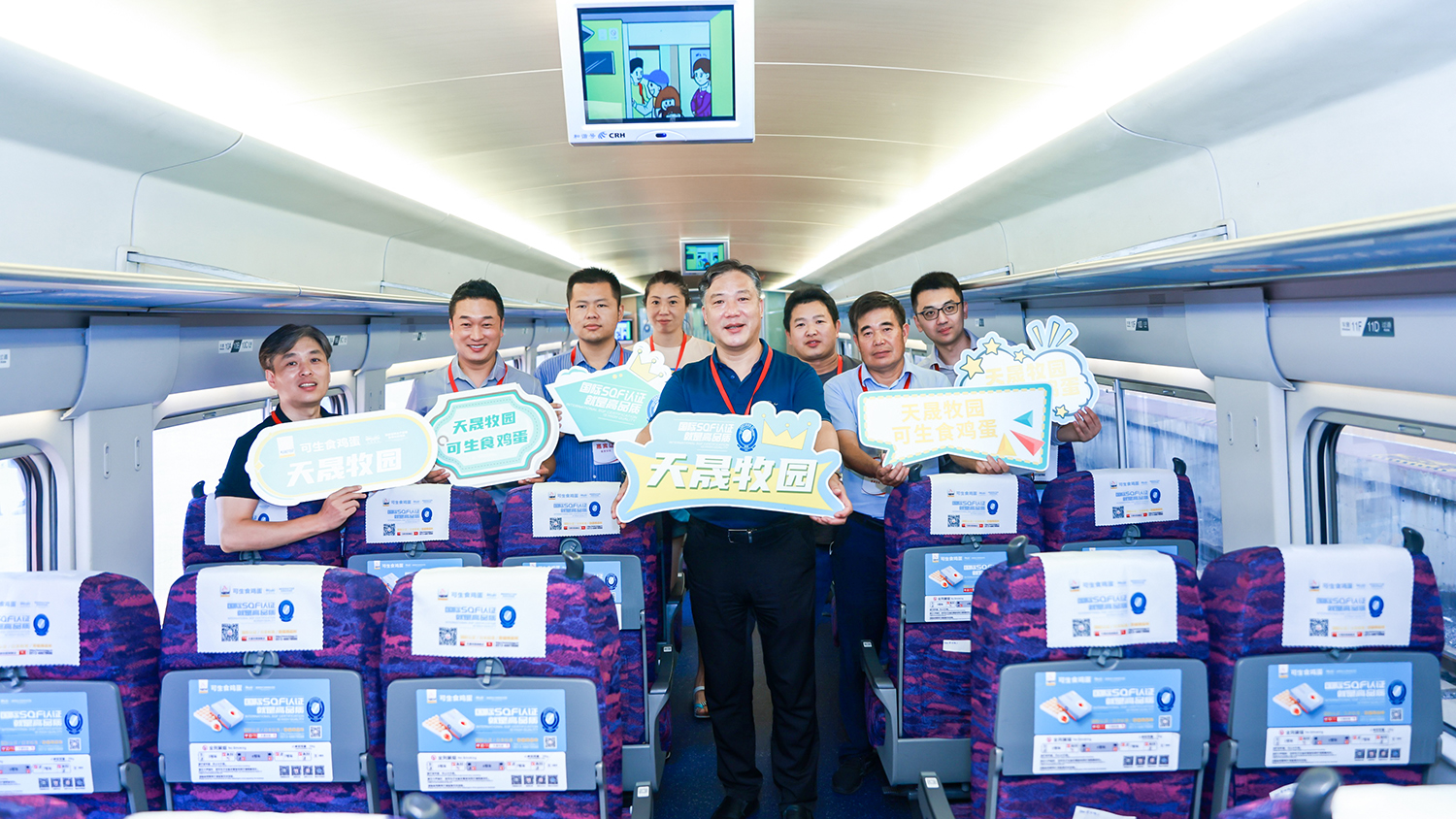 天成集團銷售副總經(jīng)理王愛東,綜合部經(jīng)理沈亞彬,天成集團電商宣傳部胡志雷,市場部經(jīng)理戚德松、毛潤東、顧晉揚以及華鐵傳媒集團有限公司總裁助理黃大明,華鐵傳媒集團有限公司蘇州分公司銷售副總經(jīng)理王煜等領導嘉賓出席首發(fā)儀式,見證天晟牧園高鐵品牌專列盛裝啟程。經(jīng)濟發(fā)展,交通先行。高鐵作為中國速度的代表,早已成為閃耀世界的“中國名片”。此次打造高鐵品牌專列,是“天晟牧園”品牌搭乘“中國速度”,讓健康、安全的鮮雞蛋及蛋制品走進千家萬戶,實現(xiàn)品牌賦能的重要戰(zhàn)略之一。