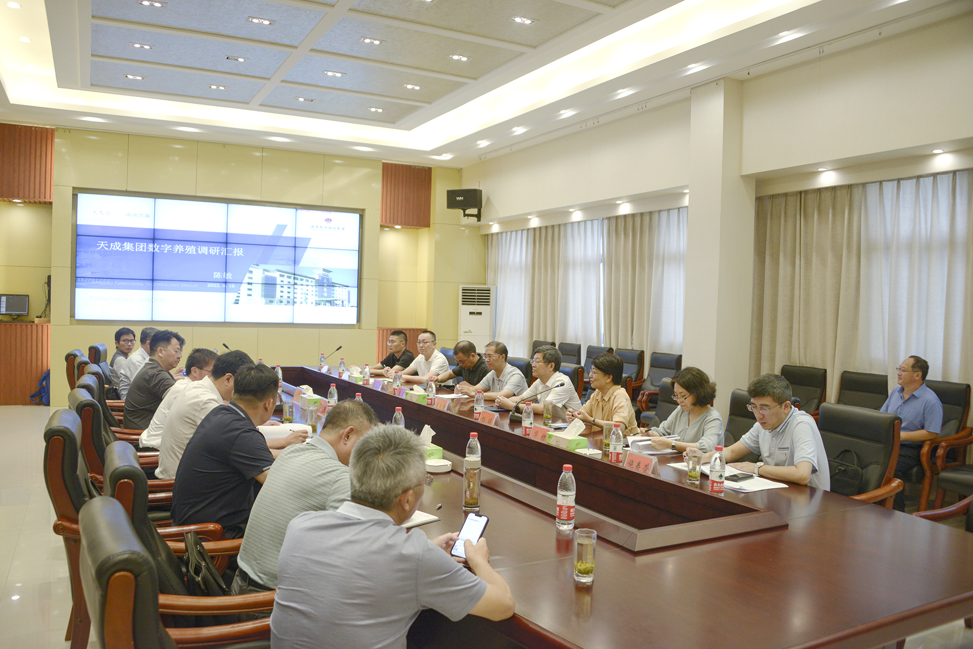 8月16日,江蘇省農(nóng)業(yè)農(nóng)村廳總畜牧獸醫(yī)師袁日進(jìn)率隊(duì)到江蘇天成集團(tuán)就數(shù)字技術(shù)及裝備在畜牧養(yǎng)殖生產(chǎn)中的應(yīng)用進(jìn)行專題調(diào)研。